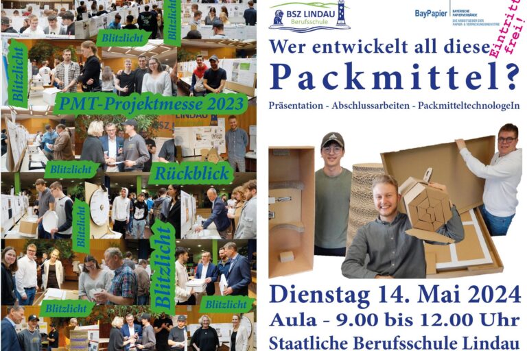 Herzliche Einladung zur Projektmesse Packmitteltechnologie am 13.05.2025, 09.00 Uhr-12.00 Uhr, Aula des BSZ-Lindau.