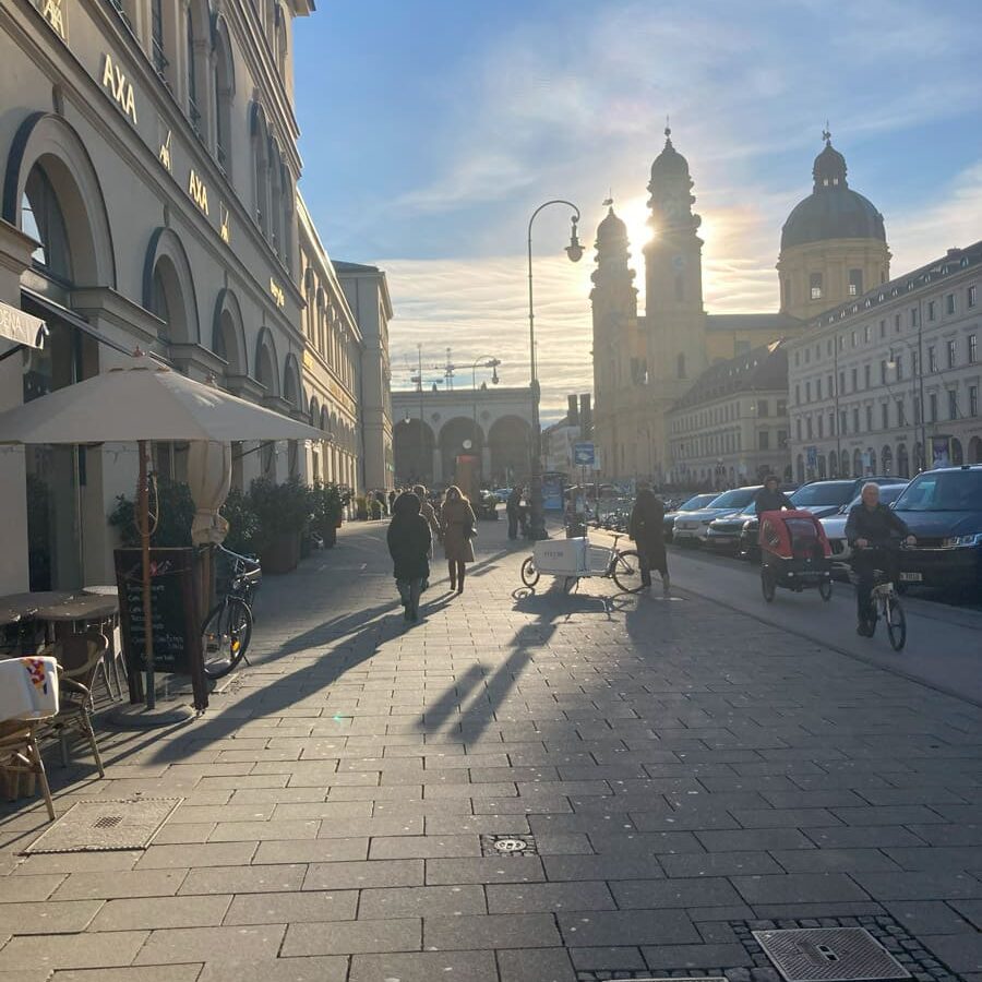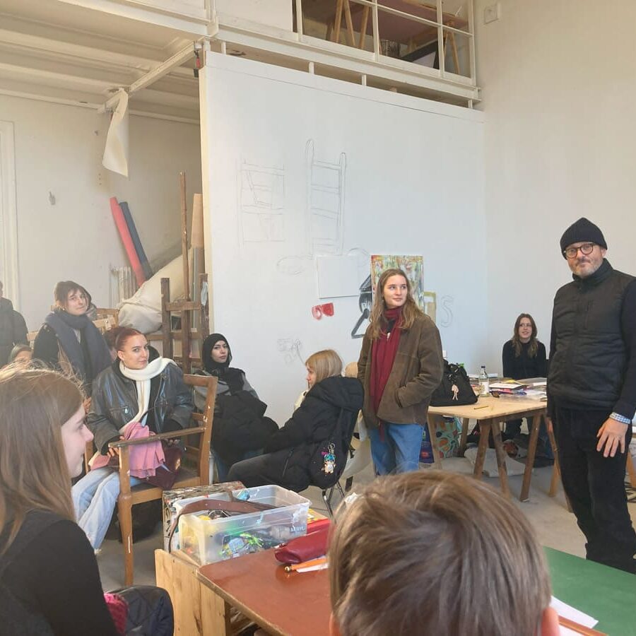 Nach einer ganz kurzen Stärkung am Bahnhof ging’s schnurstracks zur Akademie der Bildenden Künste, die schon so viele bedeutende und klangvolle Namen hervorbrachte wie z. B. Leibl, Marc, Corinth, Kandinsky, Klee, Mucha, de Chirico u. v. m. auf deren Spuren wir quasi ein wenig wandern durften. Dabei führte uns freundlicherweise Professor Nils Norman, bei dem eine unserer ehemaligen Gestalterinnen der FOSBOS Lindau aktuell studiert. Im Atelier seiner Klasse erfuhren wir von zwei gerade dort arbeitenden Studentinnen einiges zum recht freien Studium an der AdBK. Doch die Uhr tickte, die Zeit war knapp und ehe wir uns versahen, waren wir auch schon auf dem Sprung in die Ludwigstraße Richtung Staatskanzlei.