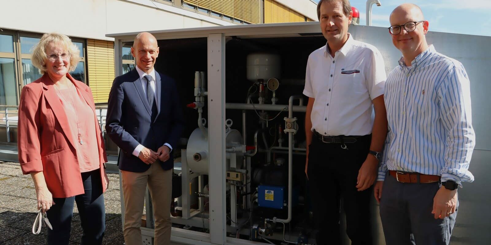 Sie freuen sich über die Zusage aus München (von links): Berufsschulleiterin Antje Schubert, Landrat Elmar Stegmann sowie die Lehrkräfte Günter Köhler (Abteilungsleiter Elektrotechnik, Kälte- und Klimatechnik) und Philipp Kopp (Abteilungsleiter Kälte- und Klimatechnik). (Foto: LRA Lindau)