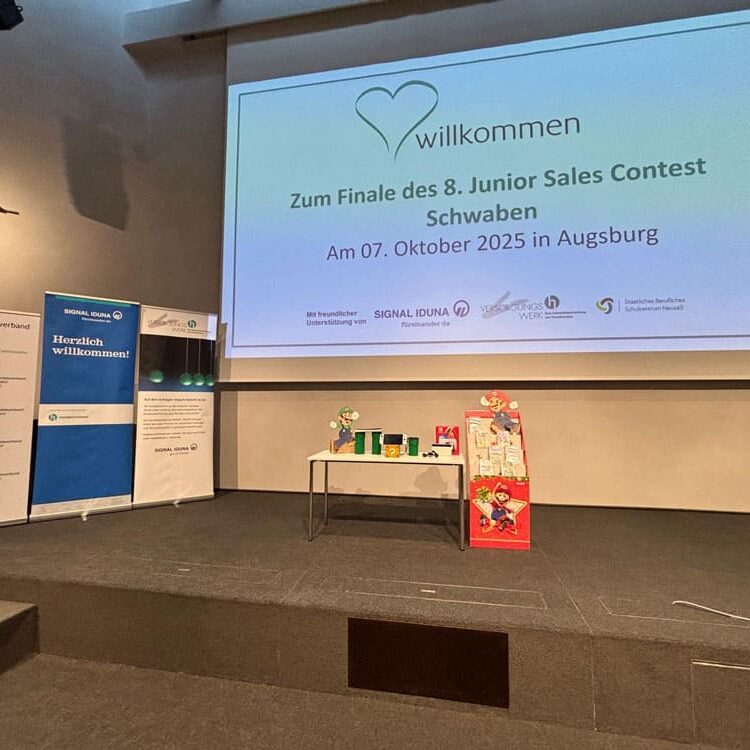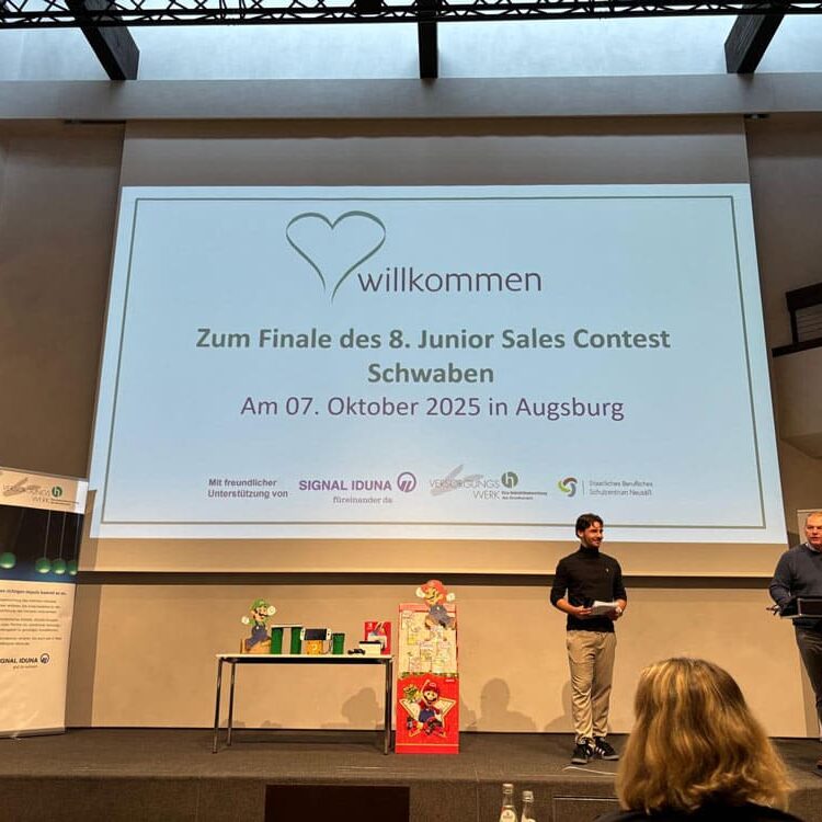 Am 07.10.25 war es in Augsburg soweit: Der Junior Sales Contest Schwaben, ein Verkaufswettbewerb für Auszubildende vom Handelsverband Bayern, fand zum bereits 8. Mal statt. Das BSZ Lindau, das zum 2. Mal an diesem Wettbewerb teilnahm, stellte hierfür eine Kandidatin aus der Einzelhandelsklasse 12. Die Teilnehmenden führen in diesem Wettbewerb ein 10-minütiges Verkaufsgespräch vor Publikum vor, das sie vorher gemeinsam im Unterricht geübt hatten. Auch ein englisch sprachiger Kunde muss bedient werden. Die besten Kandidaten bekommen Geld- und Sachpreise und der Gewinner / die Gewinnerin des Schwabenausscheids darf anschließend nach Salzburg fahren und sich dort mit Auszubildenden aus Österreich, der Schweiz und Südtirol messen. Auch gibt es einen Preis für die schönste Warenpräsentation zu gewinnen.