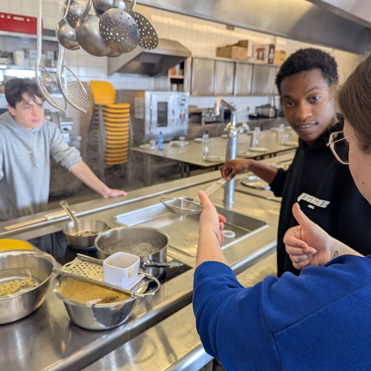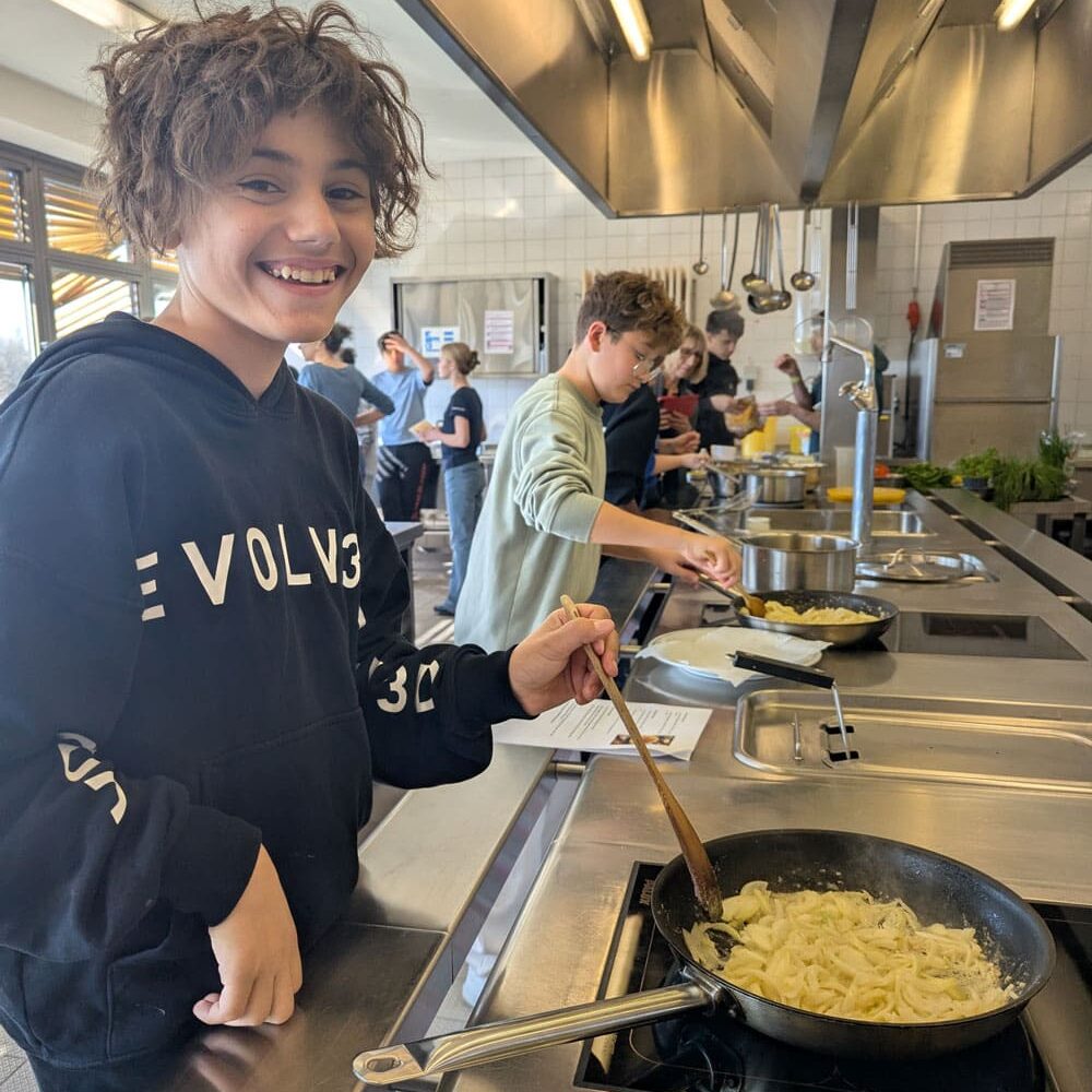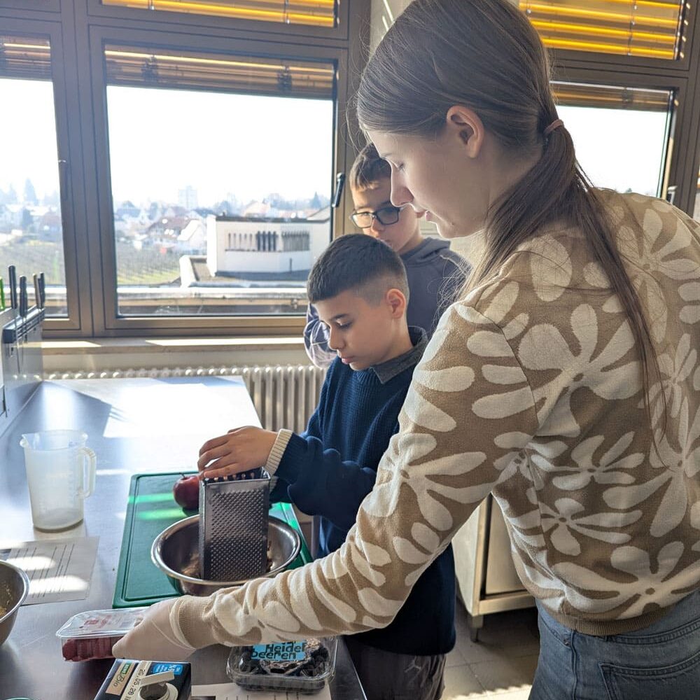 Besonders lebhaft wurde es in der Schulküche: Unter der Leitung von Sabrina Zigaus bereiteten die Schülerinnen und Schüler gemeinsam Bircher-Müsli, Granola und echte Allgäuer Käsespätzle zu – natürlich inklusive ausgiebiger Kostprobe. Auch ein typisch bayerisches Frühstück durfte in den darauffolgenden Tagen am BSZ natürlich nicht fehlen.